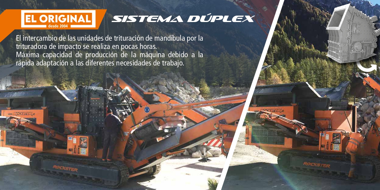 Cualquier equipo que se adquiera con cumpla con la Capacidad Duplex podrá adquirirse tanto la Machacadora de Mandíbulas como la Trituradora en el mismo momento de la primera compra o posteriormente.